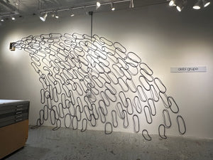 Over the past few years, we have witnessed a growing discord, not only in our country, but in the rest of the world as well. In June, 2018 when Debi Grupe and Linda Maxson saw the first images of children being put in cages at the Mexican border, it had such an impact that it affected what they saw in an art piece that Debi was creating. The piece involved colorful stickpins being painted black. The transformation of those small pins inspired them to create a piece to represent the struggle between human freedom and forces that would suppress it.